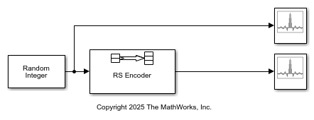 The Integer-Input RS Encoder block creates a Reed-Solomon code.