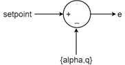 이 식은 다음 다이어그램에 표시된 합산점입니다. 여기서 setpoint는 2개의 입력을 나타내고 e는 2개의 출력을 나타냅니다.