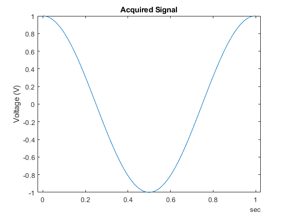 plot(data1.Time, data1.Variables); ylabel("Voltage (V)") title("Acquired Signal");