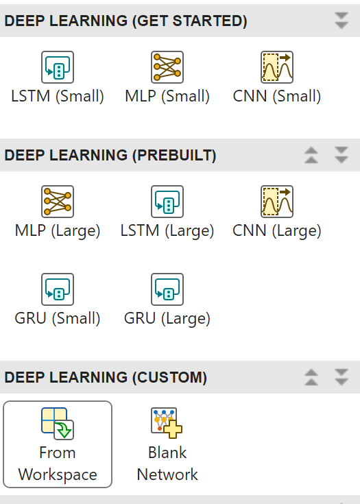 Instead of building your own network, you can use the prebuilt network provided as a supporting file with this example. To use this prebuilt network, load the network and import it in the Time Series Modeler app.