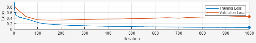 To check for overfitting, at each validation frequency, the app checks by what percentage the validation loss is higher than the average training loss. The software computes the average training loss across the last miniBatchSize iterations. If the validation loss is more than 10% higher than the average training loss for two or more validation checks in a row, then the model is overfitting.