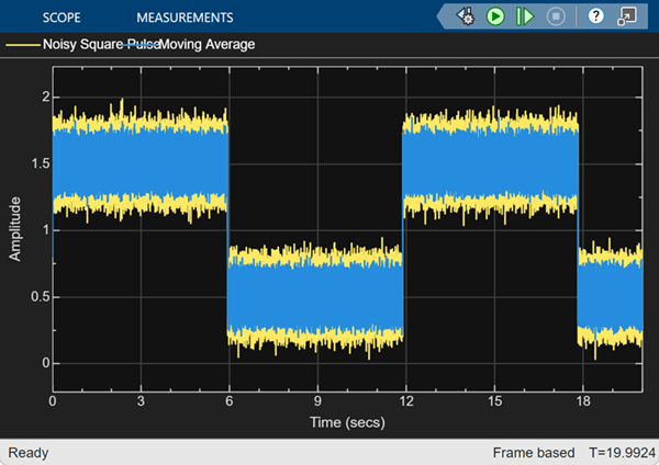 Compare the sliding window averaging method and the exponentially weighted averaging method in Simulink® using the Moving Average block.