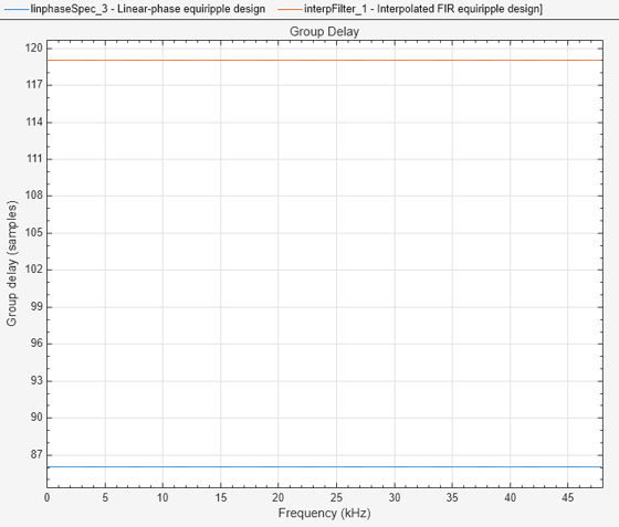 fvt = filterAnalyzer(linphaseSpec,interpFilter,Analysis='groupdelay');