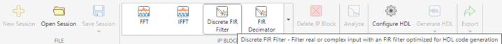 From the IP Blocks gallery in the app, select the Discrete FIR Filter.