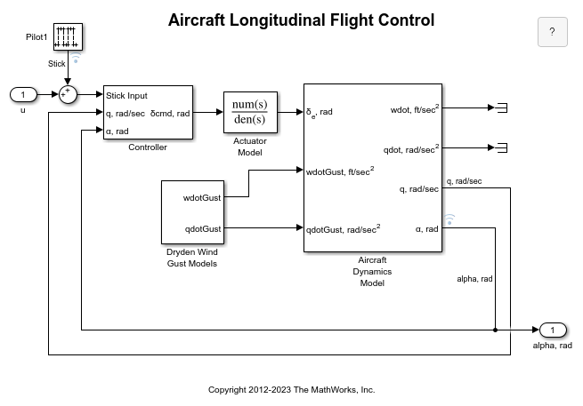 이 모델은 항공기 세로 방향 비행 제어 예제의 모델을 이산화한 버전입니다.