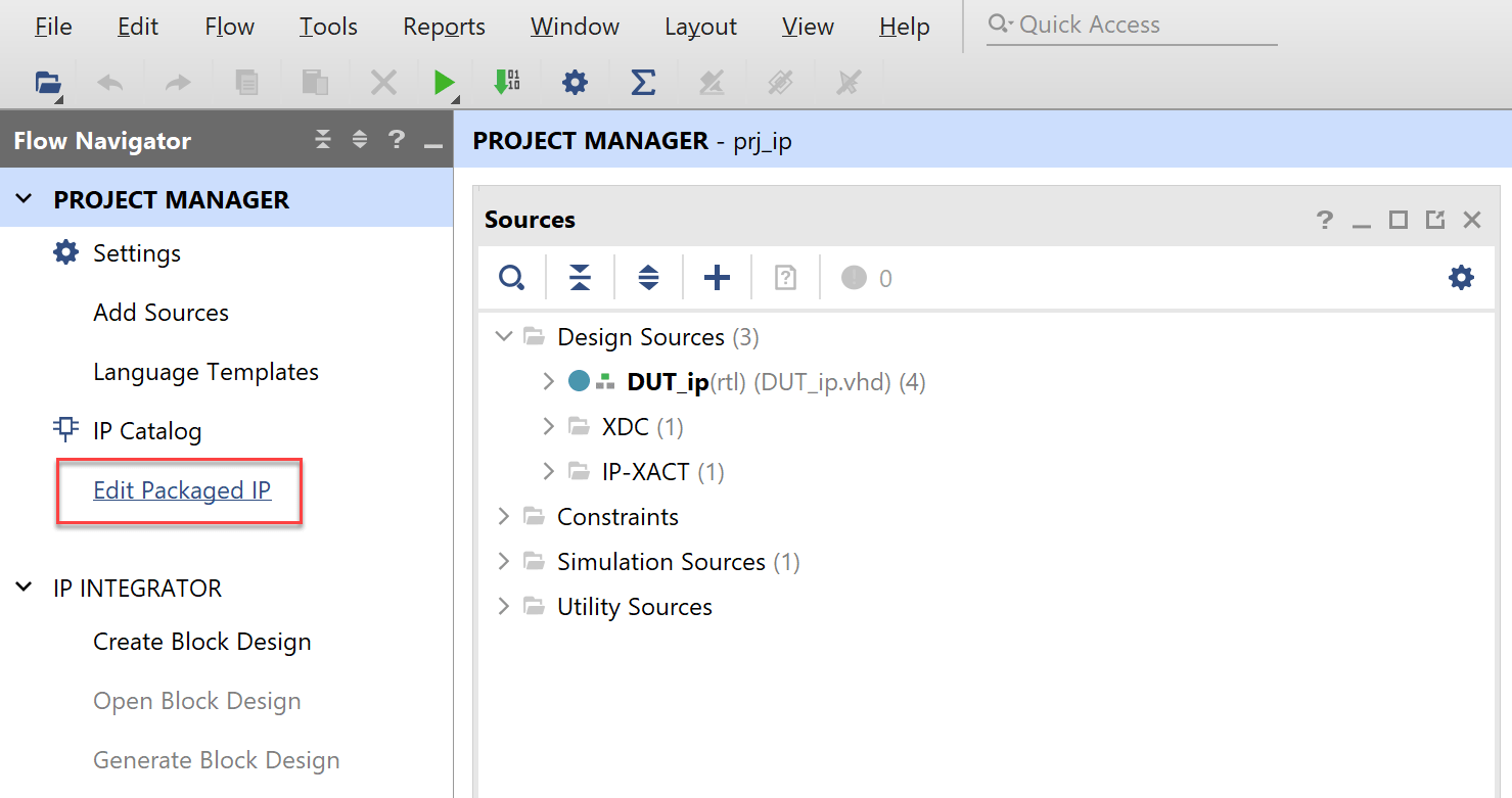 2. In Vivado, click Edit Packaged IP to open the IP Packager.