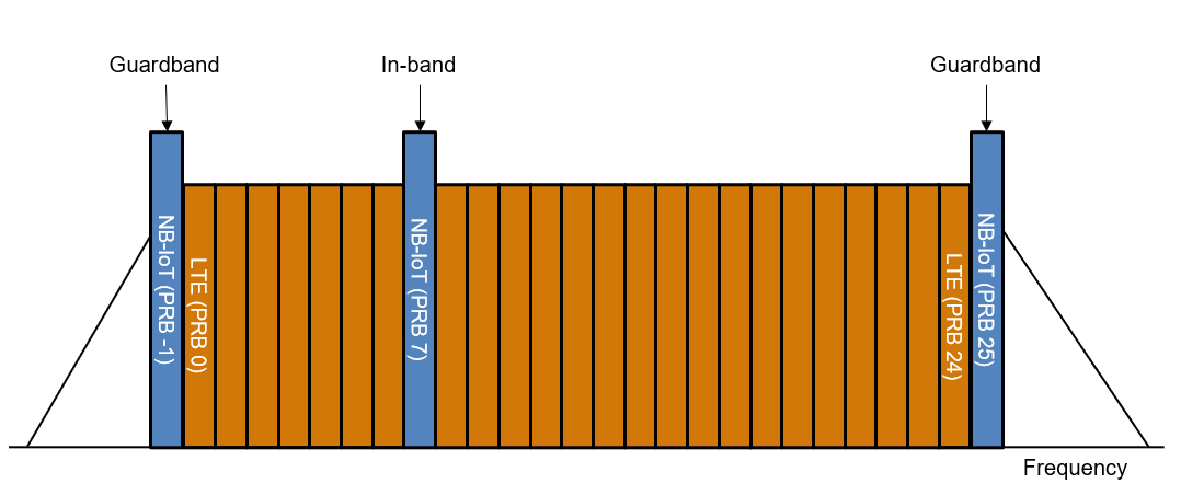 To support maximum flexibility of the NB-IoT deployment, 3GPP defines these three NB-IoT modes of operation (TS 36.104 Section 3.1):