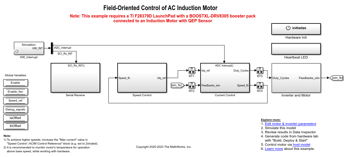 이 예제에는 모델 mcb_acim_foc_qep_f28379d가 포함되어 있습니다.