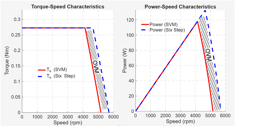 The transition between SVM, overmodulation, and six-step mode is handled through the continuous operation of the current regulators. By avoiding discrete algorithm switching, the system eliminates the torque transients and current spikes typically associated with mode transitions in industrial drives.