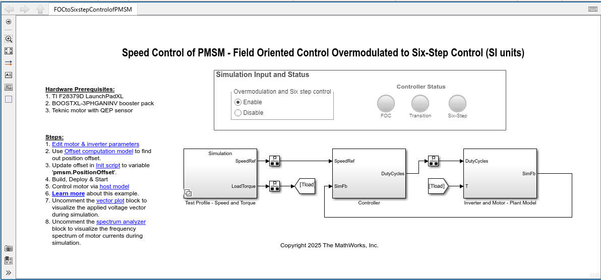 2. Open the target model FOCtoSixstepControlofPMSM.slx.