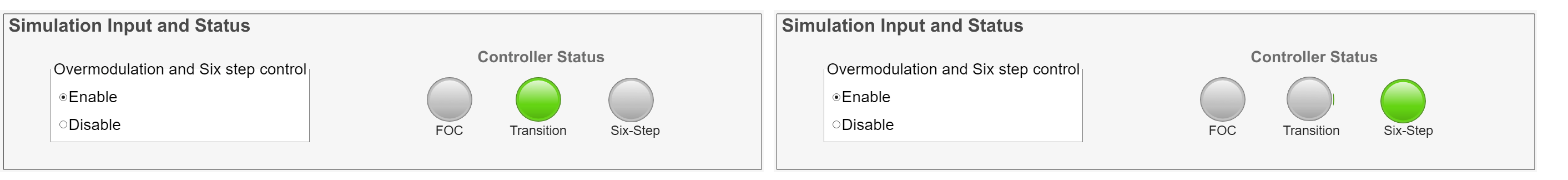2. Click the Enable option to turn-on the simulation input required for overmodulation and six-step control.