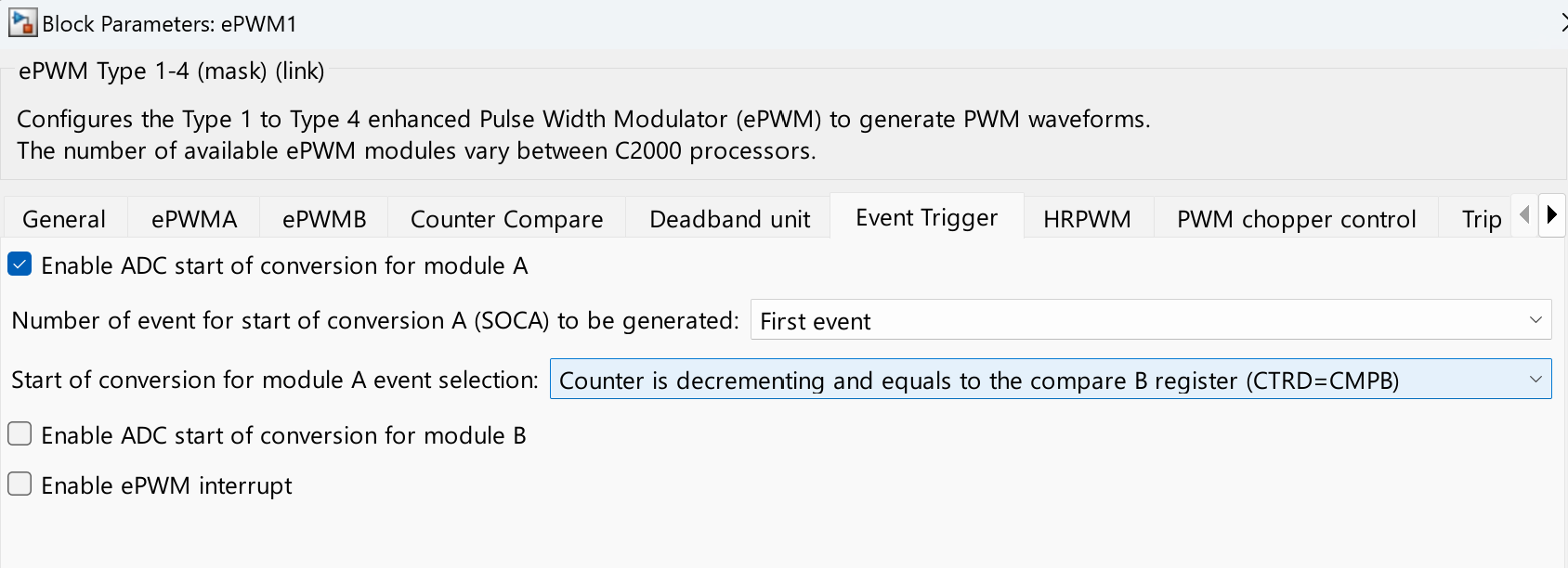 PWM Block Configuration for F28069 control Card