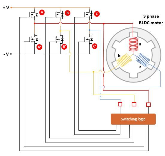 각 모터 상에 제때 전원을 공급하는 올바른 정류 패턴(또는 듀티 사이클)을 생성하려면 6단계 정류 알고리즘에 위치 피드백이 필요하며, 이는 상 권선의 역기전력에서 계산할 수 있습니다.
