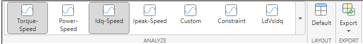 Custom — Customize the two axes of the plot to perform your analysis. You can select the characteristics to be represented in either axes (Torque, Power, Speed, Id, Iq, and Ipeak).