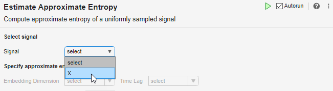 MATLAB 편집기에서 라이브 스크립트에 근사 엔트로피 추정 작업을 추가하려면 다음을 수행하십시오.