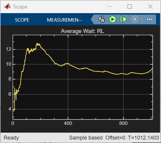 SampleTimeof -1 causes the block to inherit the sample time of its parent subsystem. For more information, see Conditionally Executed Subsystems Overview (Simulink).Specify the discount factor of 0.9995. In this problem, the reward (negative customer waiting time) is delayed until service completes, so the agent must consider a longer sequence of actions before seeing the outcome. A high discount factor of 0.9995 ensures that the agent puts larger weight on future outcomes, enabling it to learn long-term strategies rather than making short-sighted decisions.