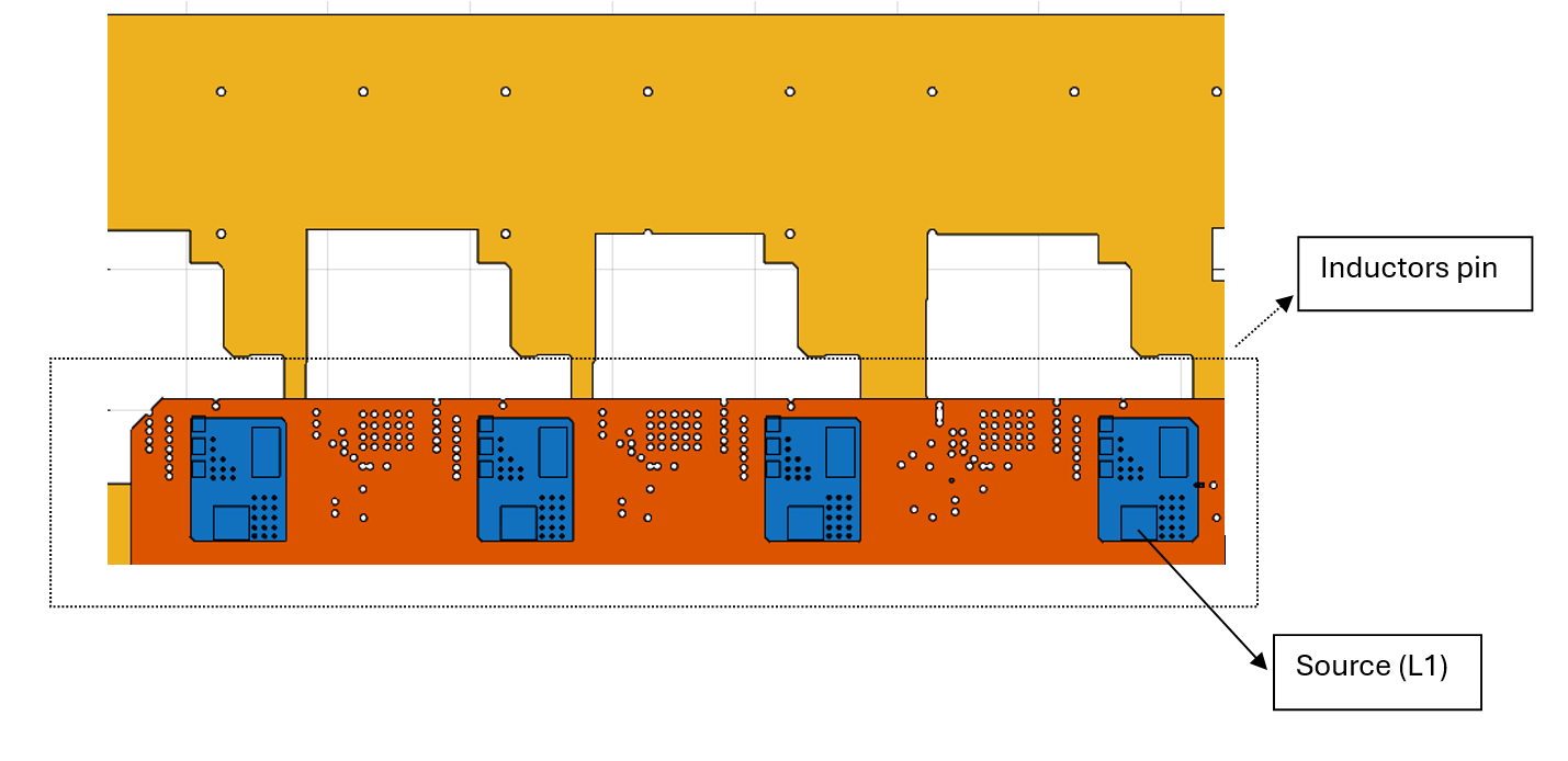 Use findComponents to locate all inductor connected to the cadnet. These typically represent the output stage of the VRM. Assign the pin of the L1 inductor as the source: