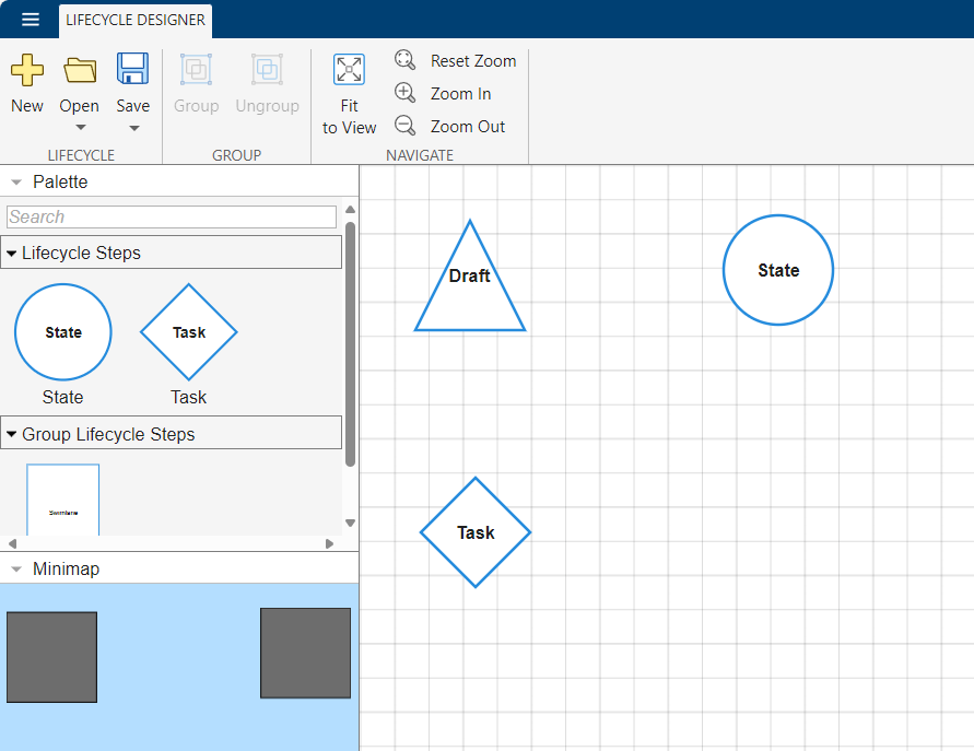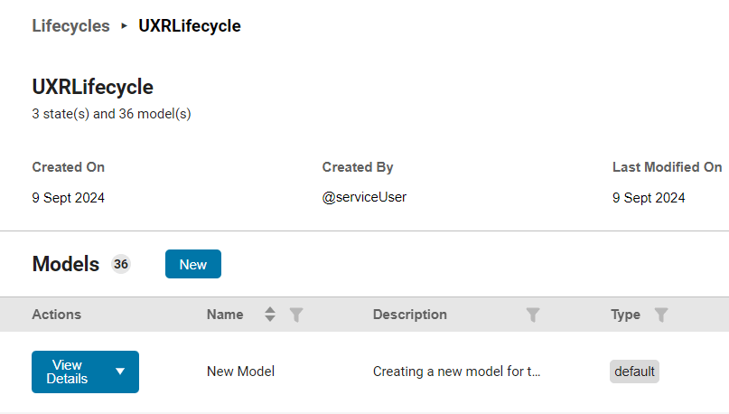 Each Modelscape model must be associated with a lifecycle. A lifecycle is a set of possible states the model can inhabit, as well as the transitions between them. Each model version must be in one of the states of the lifecycle.