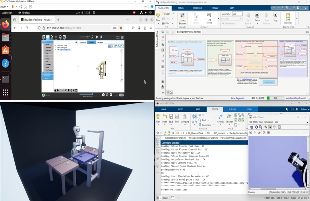 • Simulink_3D_URSim_IBP_Target.slx — The simulation target is a semi-structured bin picking scene created using Simulink 3D Animation