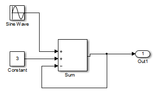 An algebraic loop exists whenever the output of a block having direct feedthrough (such as Gain, Sum, Product, and Transfer Fcn) is fed back as an input to the same block. The Simulink engine is often able to solve models that contain algebraic loops, such as the next diagram.