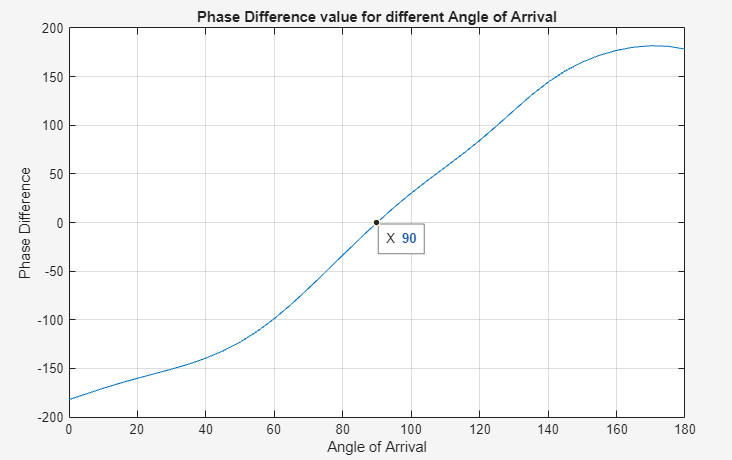 This example shows how to estimate the Angle of Arrival (AoA) using the phase difference data between antenna elements.