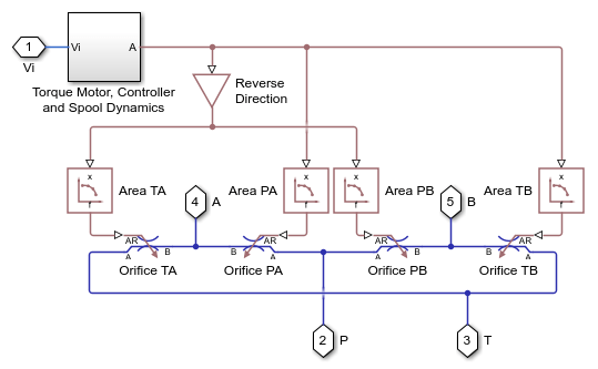 이 정도 충실도의 모델은 서보 밸브 제어기의 설계와 테스트를 이상적으로 지원합니다. 이 모델에는 안정성 여유에 영향을 주는 전기기계 고주파 모드가 포함되어 있으며, 유압 장치에서 많은 요구가 발생할 경우 생길 수 있는 비선형 유량 효과도 포함되어 있습니다.