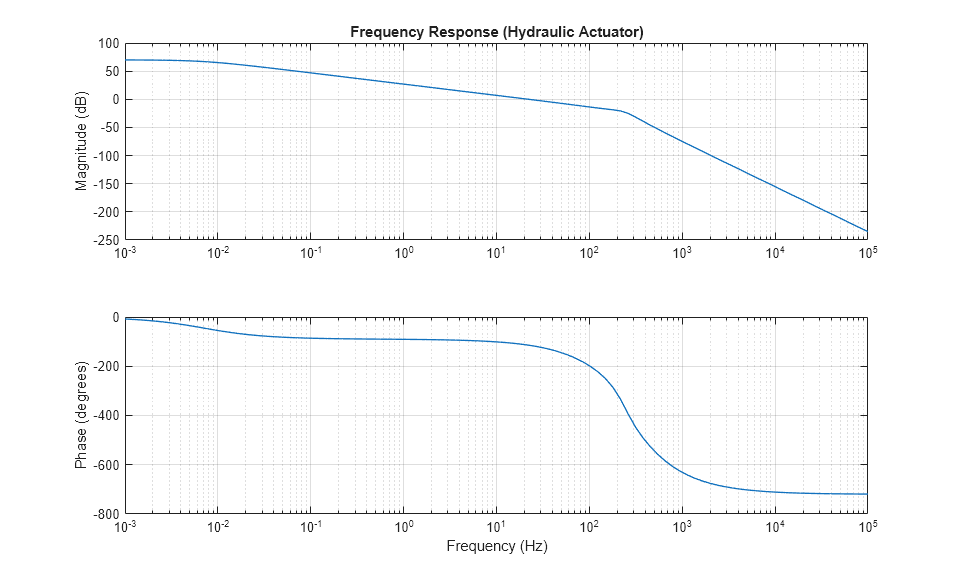 이 예제에서는 폐루프 회로에서 등온 유체 도메인에 구현된 왕복동 실린더(double-acting cylinder)와 함께 작동하는 양방향 밸브를 보여줍니다. 제어기는 연속시간 전달 함수와 전송 지연의 합으로 표현됩니다. 지연을 통해, 이산시간으로 구현될 때 계산 시간(1개의 이산시간 주기)에 영차 유지(1개의 이산시간 주기의 절반)를 더할 수 있습니다. 주파수 응답이 생성될 수 있도록 선형 모델이 구성되어 있습니다. 더 빠른 데스크탑 시뮬레이션을 구성하려면 전송 지연을 주석 처리하고 솔버 최대 스텝 크기를 늘리십시오.