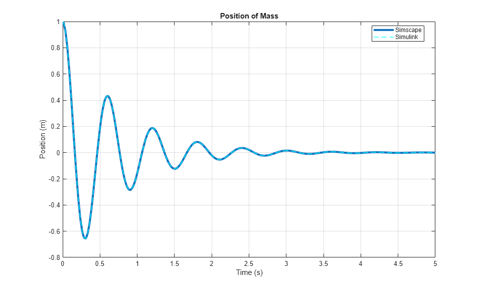 이 예제에서는 Simscape™ 블록 및 물리적 연결을 사용하는 질량-스프링-댐퍼 모델과 Simulink® 블록 및 신호를 사용하는 모델을 비교합니다.