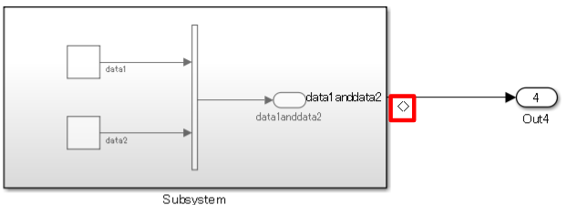 Bus Creator 및 Outport 블록에 연결되는 신호에는 이름이 없지만 Subsystem 및 Outport 블록에 연결되는 신호에는 전파된 신호 표시가 선택됩니다.