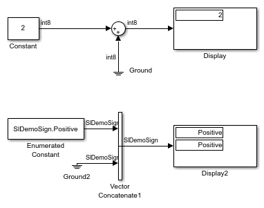 열거형 데이터형을 사용할 경우 Ground 블록은 열거형의 디폴트 값을 출력합니다. 이 동작은 다음과 같은 경우 적용됩니다.