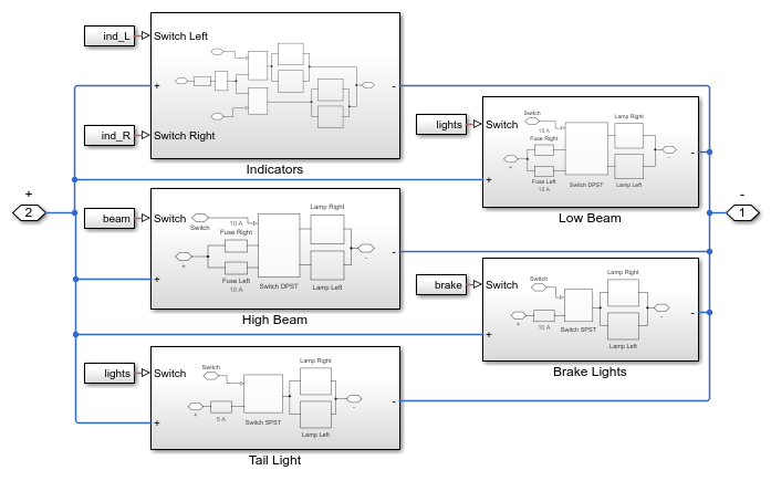 이 예제에서는 자동차 전기 시스템의 단순화된 동적 모델을 보여줍니다. 이 모델은 전기 시스템, 기계 시스템, 열 시스템을 포함하며 엔진 시동이 전기 네트워크에 미치는 영향을 시뮬레이션할 수 있습니다.