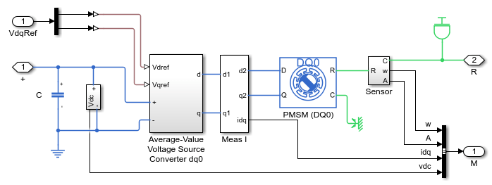 이 예제에서는 단순화된 차축-드라이브 전기차를 추진하는 매립형 영구 자석 동기기(IPMSM)를 모델링합니다. 이 예제에서는 회전자 DQ(직접 직교) 기준 프레임에서 토크를 제어하고 시뮬레이션합니다. IPMSM은 모터 모드와 발전기 모드 모두에서 작동합니다. 고정 비율 기어 감속 모델은 차량 변속기와 차동 기어를 구현합니다. Vehicle Controller 서브시스템은 드라이버 입력값을 관련 토크 명령으로 변환합니다. Drive Controller 서브시스템은 IPMSM의 토크를 제어합니다. 제어 알고리즘은 연속시간으로 구현됩니다. 이 모델을 더 빠르게 시뮬레이션하기 위해 이 예제에서는 가변 스텝 솔버를 사용합니다. Scopes 서브시스템은 시뮬레이션 결과를 확인할 수 있는 스코프를 포함합니다.