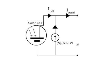 여러 개의 태양전지 셀을 병렬로 연결하면 모델 내 요소 개수가 늘어나기 때문에 시뮬레이션 속도가 느려집니다. 성능 저하를 피하기 위해, 제어되는 전류원이 필요한 병렬 경로 수를 충족하도록 전류를 증가시킵니다. 이 전류원은 Simscape™ Foundation Library의 Current-Controlled Current Source 블록에 의해 모델링됩니다.