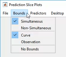 Xnew = [min(X);mean(X,"omitnan");max(X)];모델 응답 변수의 예측값과 이 예측값에 대한 신뢰구간을 구합니다.