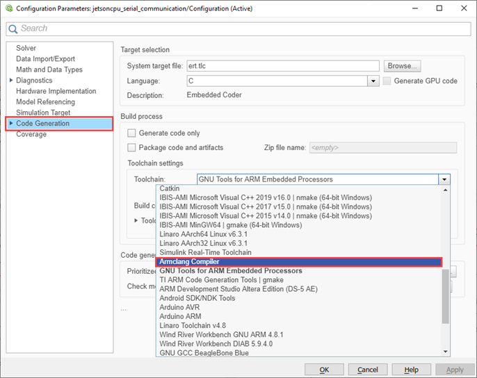 Set Up and Configure Armclang Compiler Toolchain for Code Generation