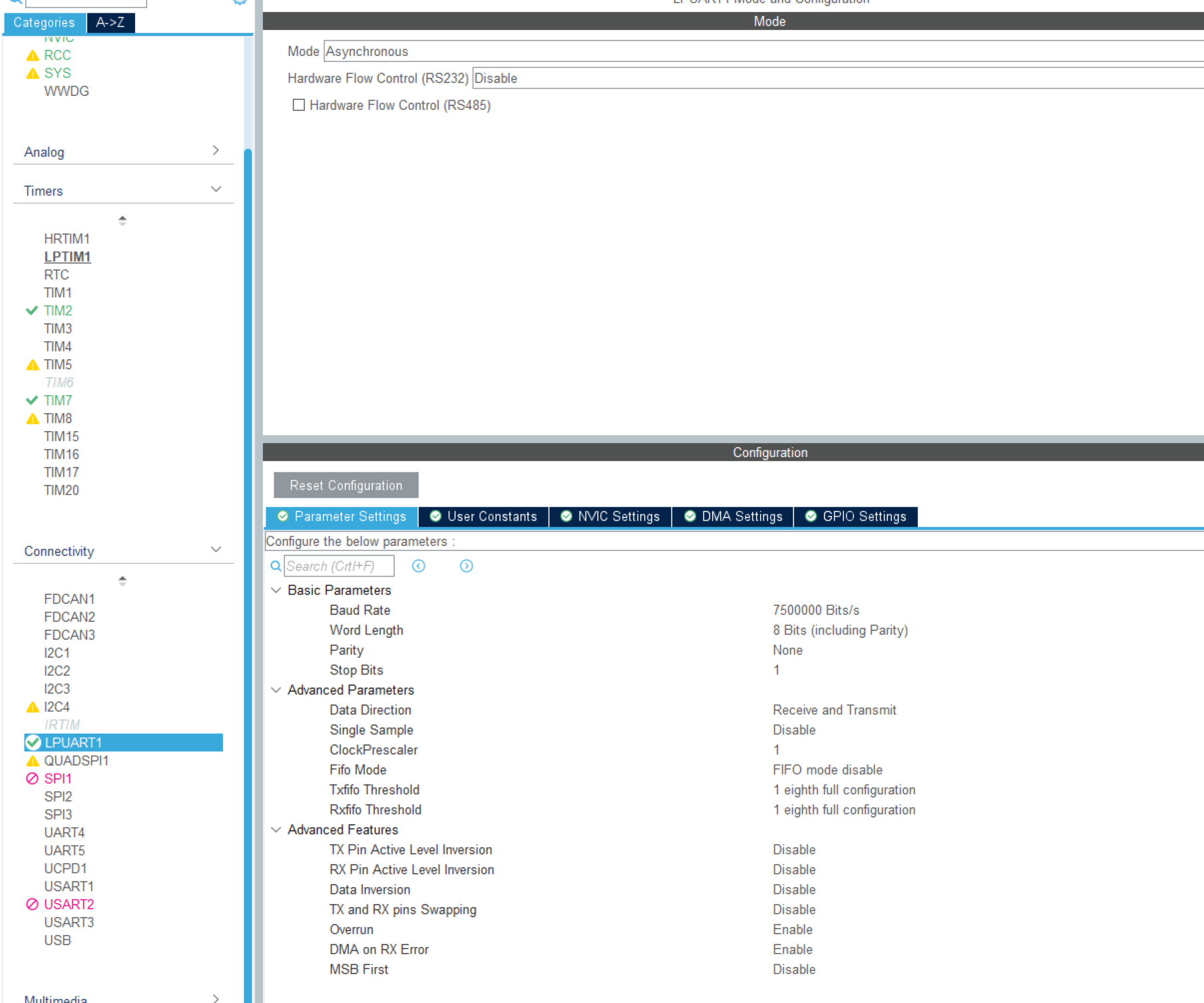 • This example utilizes the LPUART1 module on the STM32G474RE Nucleo Board.