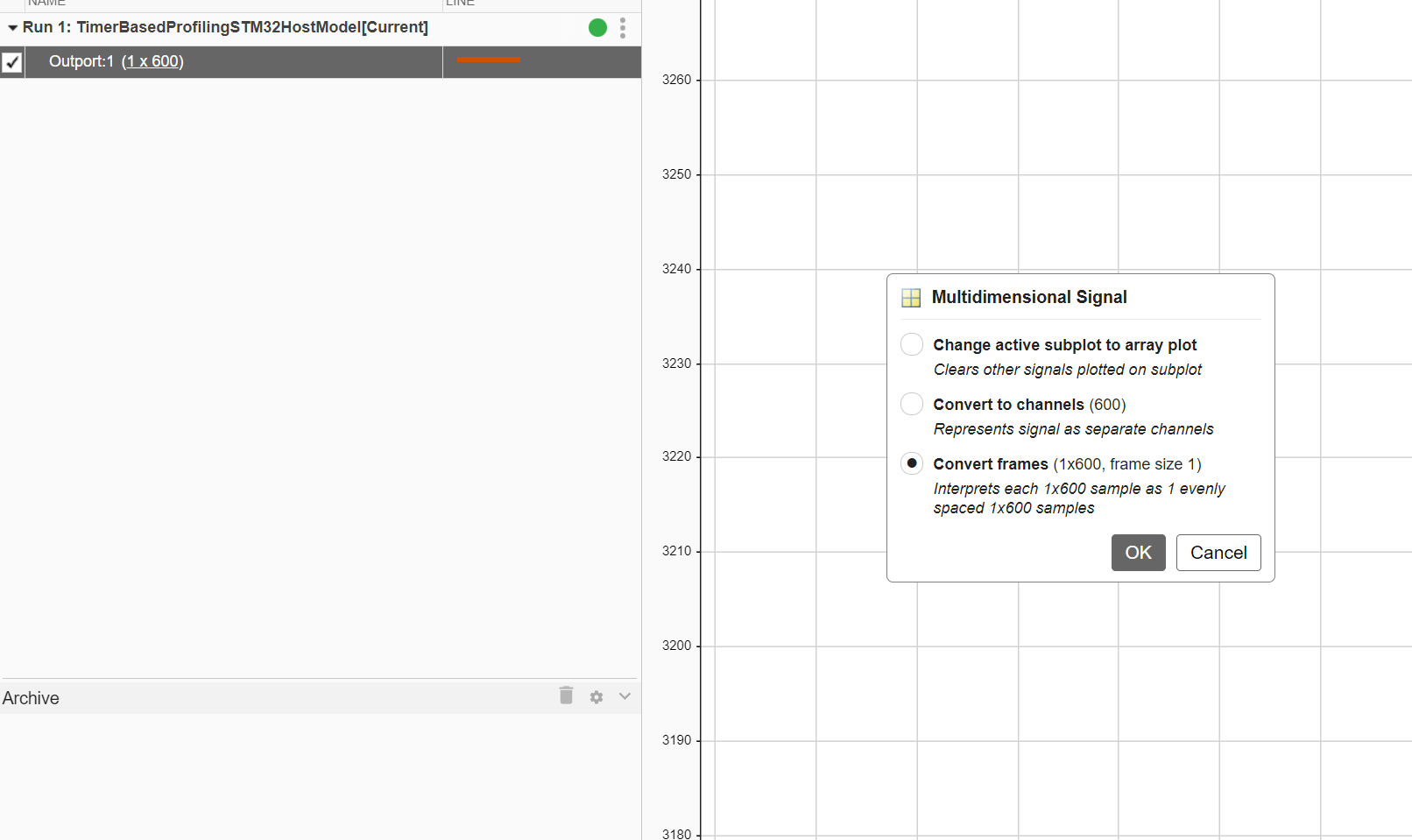 • In Simulink Data Inspector, select the Outport, choose Convert frames, and then click OK.