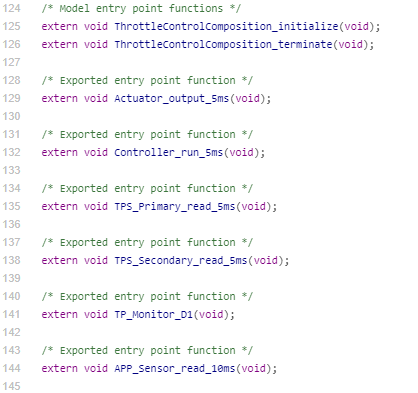 생성된 코드에는 소프트웨어 아키텍처 컴포넌트의 각 함수에 대한 진입점 함수가 포함되어 있습니다. Export-Function 모델을 위한 코드 생성에 대한 자세한 내용은 Generate Code for Export-Function Model 항목을 참조하십시오.