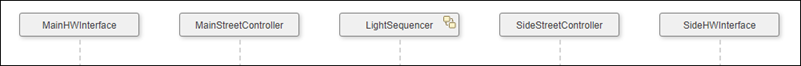 MainStreetControllerlifeline sends aPedButtonMainSimulink® message to theLightSequencerlifeline, which controls the lights at the intersection.When the