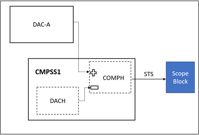 1. DAC- A is connected to the positive input of the CMPSS1H comparator (COMPH of CMPSS1).