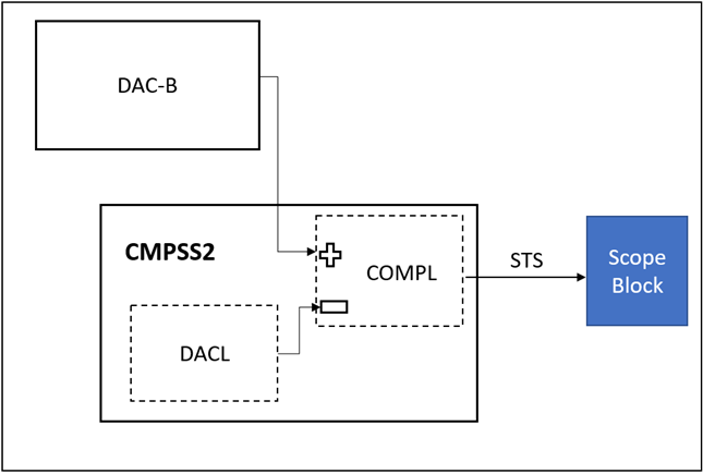 1. DAC- B is connected to the positive input of the CMPSS2L comparator (COMPL of CMPSS2).