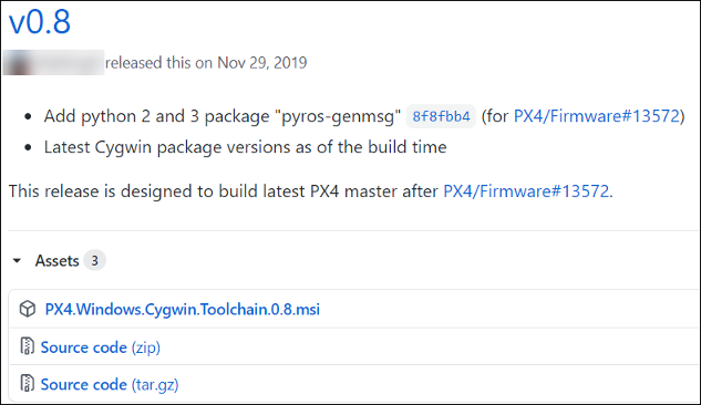 1. Download version 0.8 of PX4 Cygwin Toolchain MSI Installer, which is compatible with PX4 Firmware v1.14.3, available at this link.
