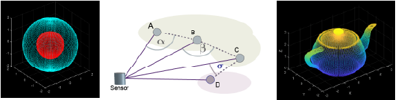 포인트 클라우드는 3차원 공간에 속한 데이터 점들의 집합입니다. 이러한 점들이 합쳐져 3차원 형상이나 객체를 표현합니다. 데이터 집합의 각 점은 x, y, z 기하 좌표로 표현됩니다. 포인트 클라우드는 많은 수의 개개의 공간적 측정값을 설명 가능한 객체로 표현할 수 있는 데이터셋으로 조합하는 수단을 제공합니다. 포인트 클라우드 처리는 로봇 주행과 인식, 깊이 추정, 스테레오 비전, 시각적 정합, 첨단 운전자 보조 시스템(ADAS)에 사용됩니다. Computer Vision Toolbox™ 알고리즘은 다운샘플링, 잡음 제거 및 포인트 클라우드 변환을 위한 포인트 클라우드 처리 기능을 제공합니다. 또한, 포인트 클라우드 정합을 수행하고, 기하학적 형상을 3차원 포인트 클라우드에 피팅하고, 포인트 클라우드를 읽기, 쓰기, 저장, 표시, 비교하는 기능을 제공합니다. 여러 포인트 클라우드를 결합하여 하나의 3차원 장면을 복원하거나, 정합된 포인트 클라우드로 맵을 작성하고, 루프 폐쇄를 검출하고, 맵을 드리프트 보정에 최적화하고, 사전 작성된 맵에서 위치추정을 수행할 수 있습니다. 자세한 내용은 Implement Point Cloud SLAM in MATLAB 항목을 참조하십시오.