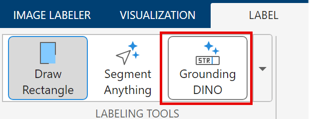 On the Label tab of the app toolstrip in the Labeling Tools section, select Grounding DINO.