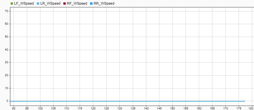 Compared to the previous case, when a device is used, there is no guarantee that the transmission of messages be synchronized with the simulation time. In particular, virtual channels are software buffers that are executed in a different thread, mimicking the behavior of hardware channels but transmitting the data without corruption. In this case, the simulation was completed before the virtual channel started routing the messages to the CAN Unpack block. The resulting signals are therefore zero.