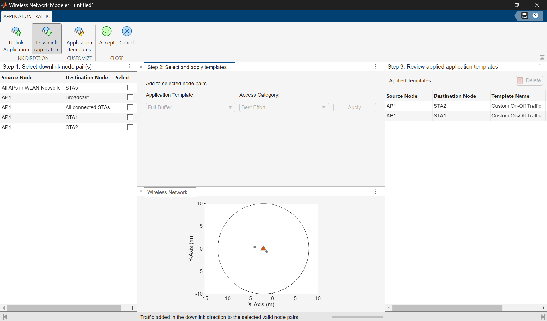 Custom Network On-Off.In the Select uplink node pair(s) pane, select All STAs in the WLAN Network. In the Select and apply templates pane, set Application Template to