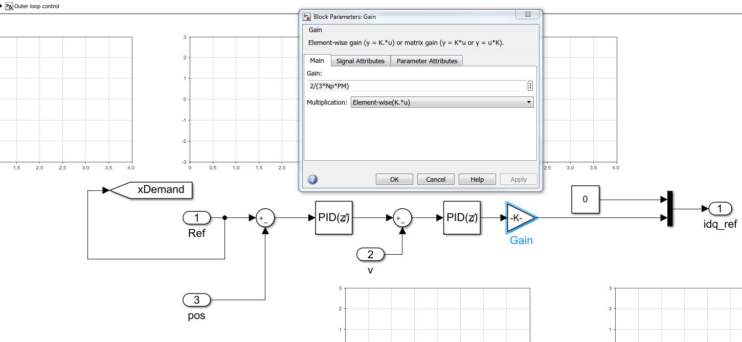 Its regarding a PMSM linear machine model, with a cascade (position and speed) outer loop and a current controller inner loop (Id and Iq currents).