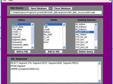 The msquery toolbox enables you initiate a query in a Microsoft Access database program and to transfer the results of directly into your MATLAB workspace. The columns headings from the Access query are parsed and assigned as the variable names of the appropriate columns in your MATLAB workspace. This can be run interactively using a GUI or from the MATLAB command line.